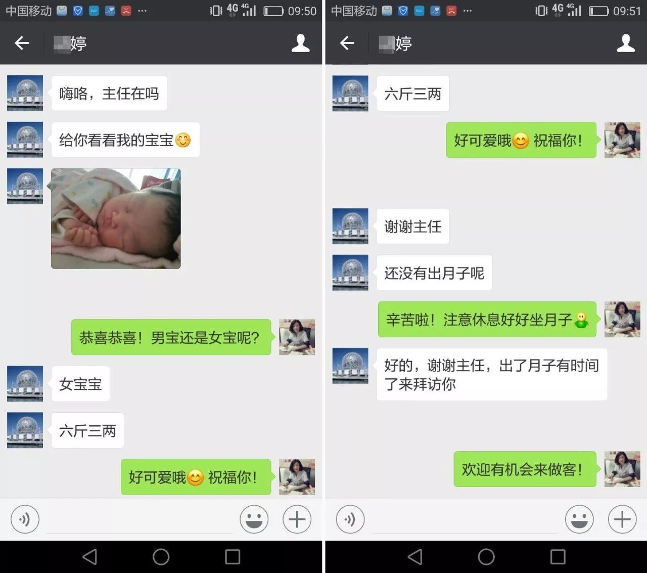 “刘主任很好,我们出院后一直有联系我,嘱托我吃药,按时复查。”对*婷来说,刘主任就像一个大姐姐一样,有问题都能发微信咨询了解,术后备孕期间她的心态也越来越好了。根据刘主任的调理方案,她很快就怀上了宝宝,而且就在前几天成功诞下小公主,六斤三两,看她的萌照也是超级可爱的。