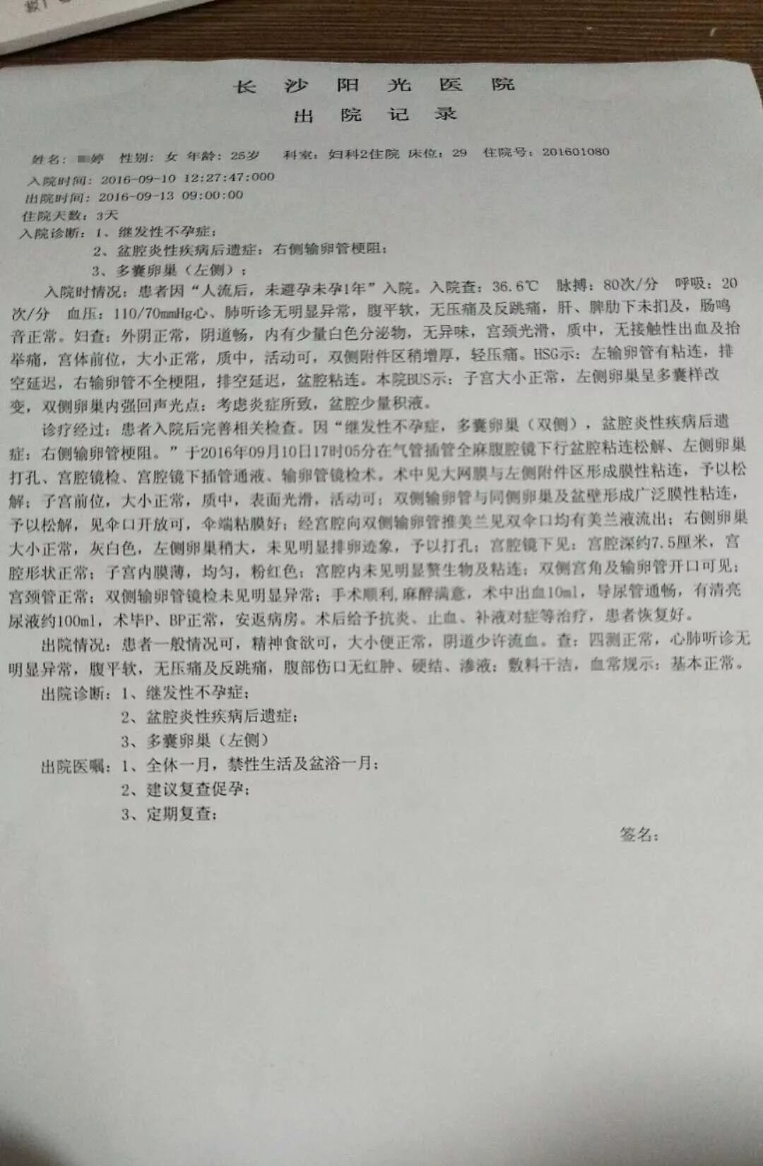 *婷,岳阳人,26岁,曾经做过人流手术,但没想到等她婚后备孕时,却迟迟怀不上宝宝。“没想到做人流会让我怀不上孩子的,备孕一年到没怀上,我才意识的有问题,赶紧到医院检查。”2016年8月底到长沙阳光医院找到刘芙敏主任看诊,检查发现她有左侧输卵管粘连、排空延迟、右侧输卵管不全梗阻、盆腔粘连、多囊卵巢(左侧)等多重生育疾病。“我治疗过像你这样情况的病例有很多,微创手术治疗不难,要是积极配合医生,心态又好,疏通输卵管、盆腔,调理后促排卵助孕很快就能怀上。”刘主任耐心分析病情,讲解治疗方案,鼓励他们放平心态。*婷和家人商量后9月10日再次入院接受微创手术治疗,恢复后出院调养。