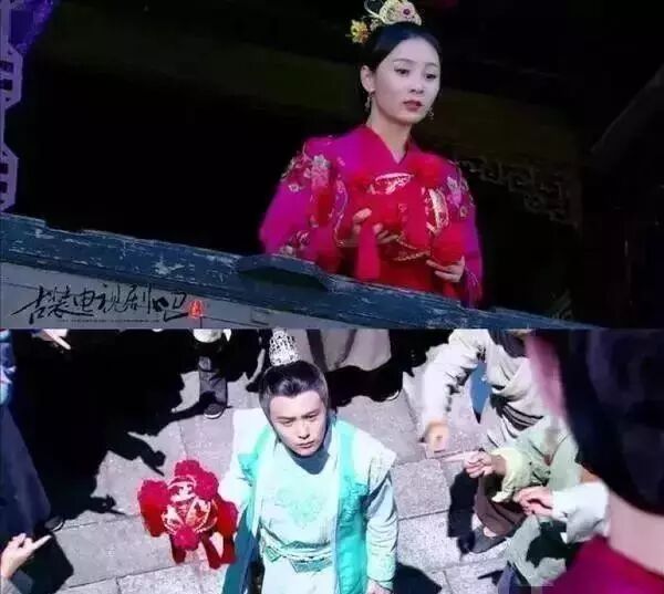 记得吗,那些年的男主即使不争不抢,也能接到抛下的绣球。比如《古剑奇谭》里马天宇饰演的兰生,本来在大街上闲逛,哐当一抬头便接到了江家小姐扔下的绣球↓