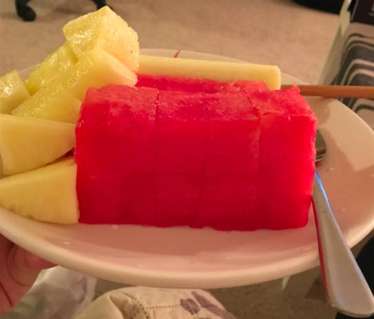 正如我之前说的,怀孕之后我不仅没有胃口大开,反而弱了很多,每餐吃不了多少就饱了。所以我就自然而然地开始了少吃多餐。每天都差不多是三餐中间再加两餐snack,以水果、酸奶、沙拉、坚果为主。