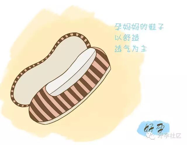 材质:孕妈妈的鞋子以舒适、透气为主,不要穿皮、尼龙材质的鞋子,最好选择棉布内衬的鞋子,吸汗快透气。鞋子最好选择大一号的就可以了。