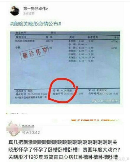 然后又在微博发了一张关晓彤怀孕诊断书,一时引起轩然大波。