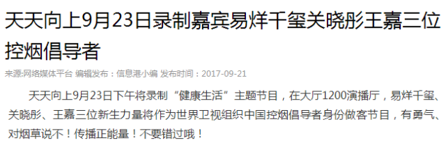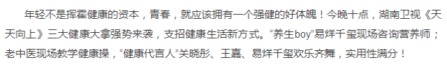 这期节目的主题是青年健康与养生,因为易烊千玺、关晓彤和王嘉有一个共同的身份——世界卫生组织中国控烟倡导者。