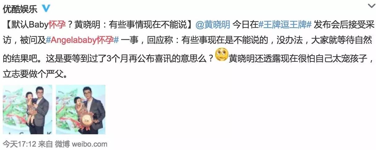 优酷和爱奇艺这样的号就比较保守,只是说“黄晓明默认?”这样↓