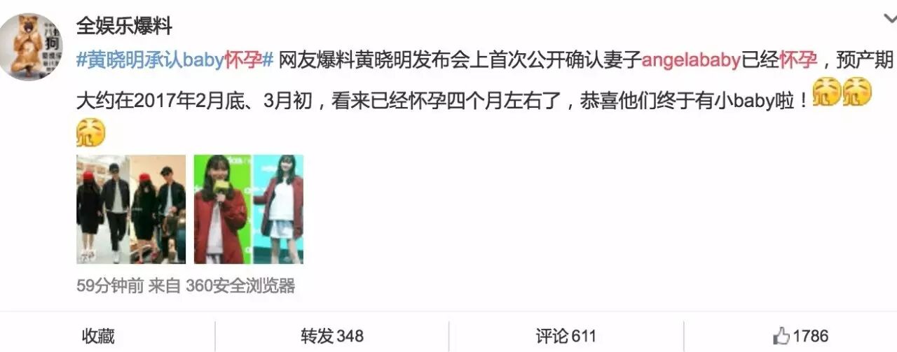 划重点:黄晓明,公开确认,ab怀孕,预产期在明年二月底三月初↓
