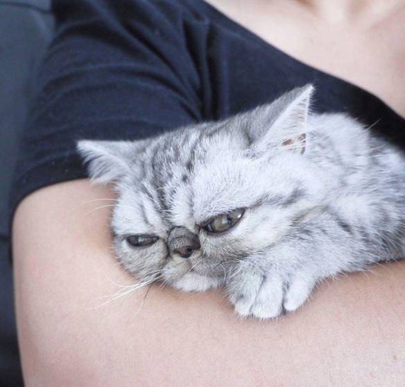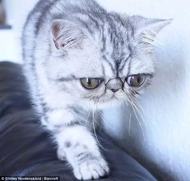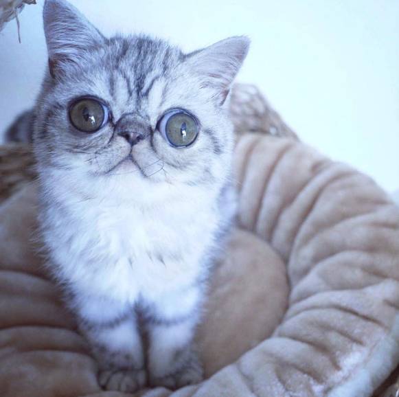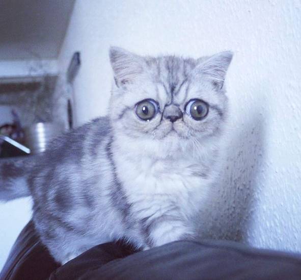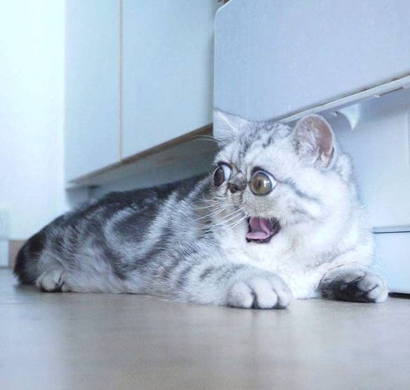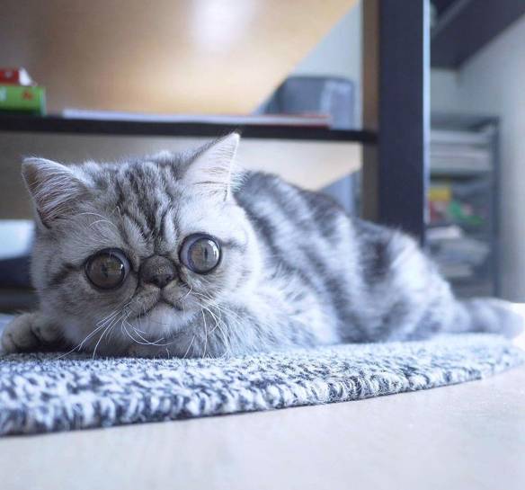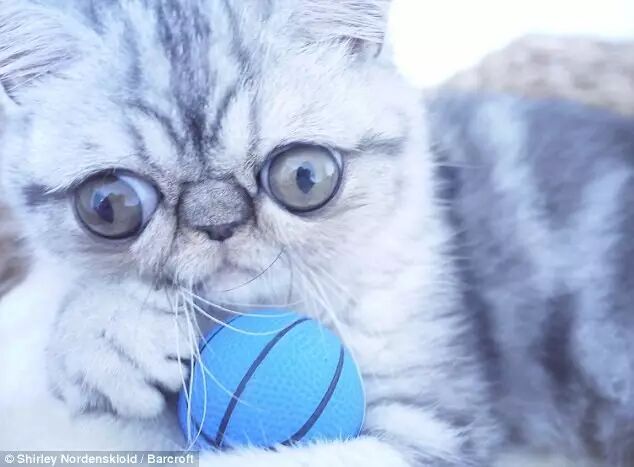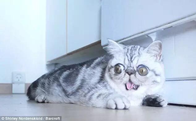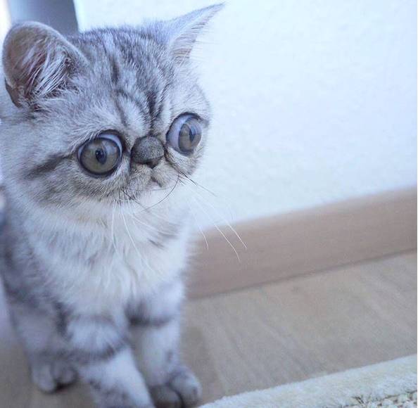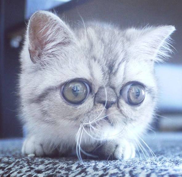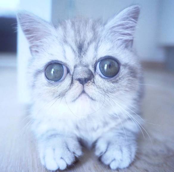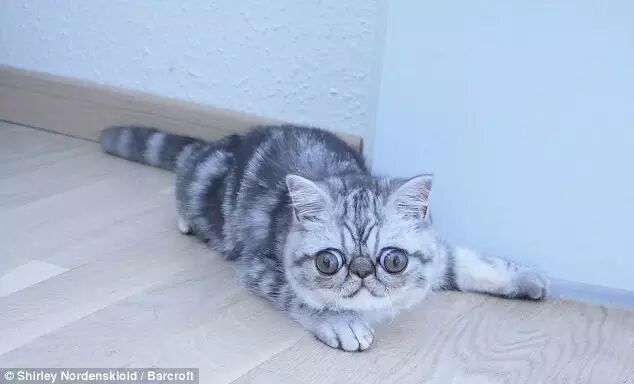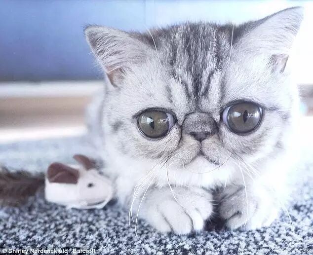 Herman现在只有五个月,和它的主人一起生活在丹麦的哥本哈根。虽然Herman在这里过着幸福快乐的日子,但是第一次看到它的人还是会被它吓一跳,因为这只猫长了一双巨大的眼睛。。。就好像这样。。