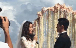 “认识你这么久,从以前能跟你当朋友,就是我觉得很幸运的事情,现在我们成为夫妻,这是我更幸运的事情,未来会有很多的事情,可能会有风风雨雨,会有很多很多的状况考验着我们,我希望我们可以同心协力,一起牵手、一起共同努力面对未来的生活,我爱你。”