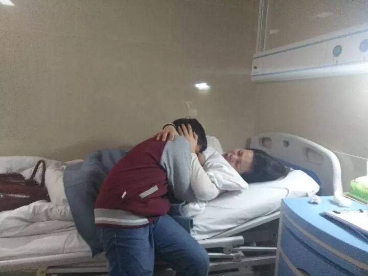 这张照片是护士被至先兆流产后,住院时的场景。照片中,床上躺的是被打的朱护士,38岁,高龄孕妇;扑在朱护士怀里的是护士的儿子。护士被打后,儿子来医院看望妈妈,母子俩抱头痛哭。