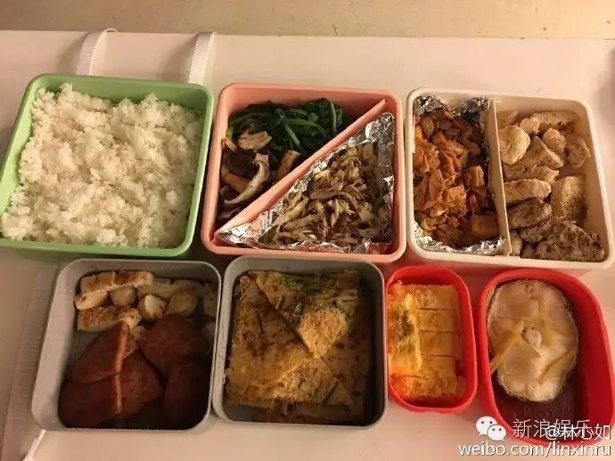 之前林心如还晒过便当,青菜我选择视而不见,那一大块鸡腿肉倒是蛮抢镜的!