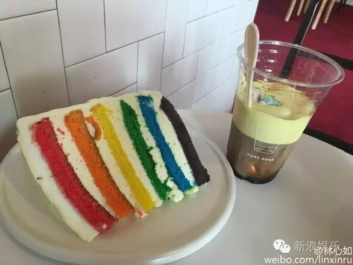 前两天晒了一块彩虹蛋糕(午饭没吃饱晚饭没找落的我,好想吃!)