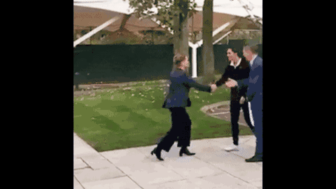 是的,没看错,哪怕是负责人,在和王室握手的时候,也要半蹲一下哦~