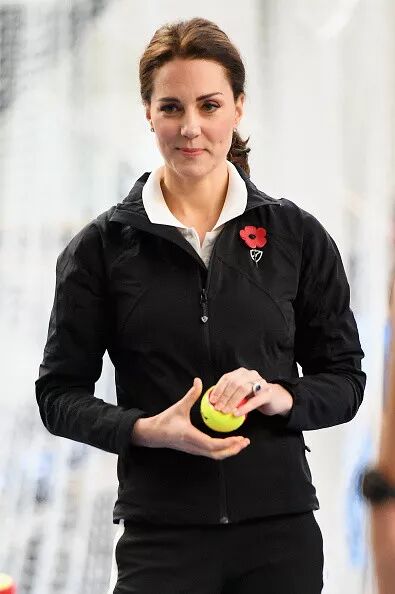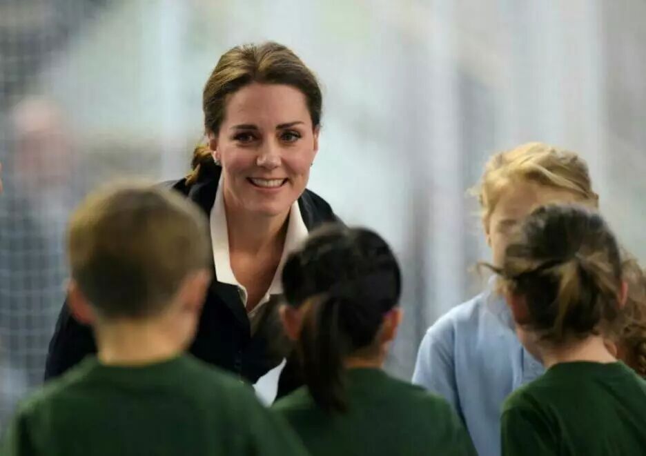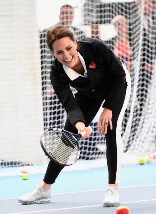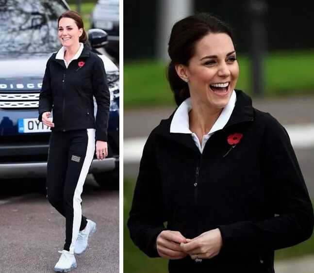 目测王妃凯特气色还好,一身黑色运动装现身,面色红润脸圆发福透露着幸福肥。