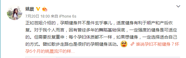 动作看起来都很专业很安全,也许有人争议孕妇不该做运动,小心动了胎气,可以来看看姚晨微博里面是这么解释滴。