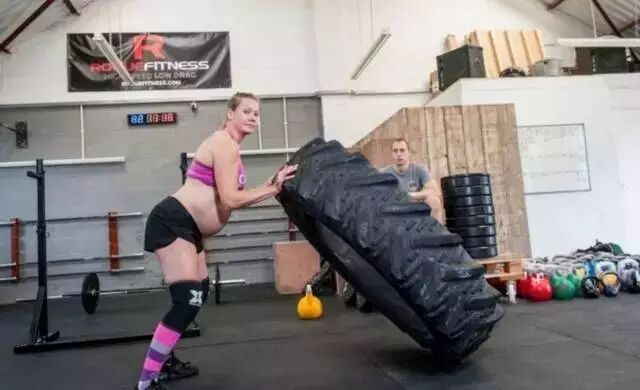 推轮胎的更生猛,这是想孩子出生以后成为大力士吗?
