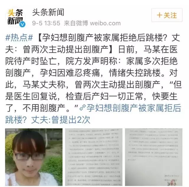 没想到是因为产妇家属根本没有顾及任何她实际情况,就强烈要求顺产,导致了根本不适合顺产的她产生剧痛,在产妇三次强烈要求剖腹产但是都被拒绝的情况下,产妇直接跳楼身亡。