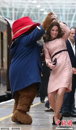 活动期间,凯特王妃大方与帕丁顿熊共舞。