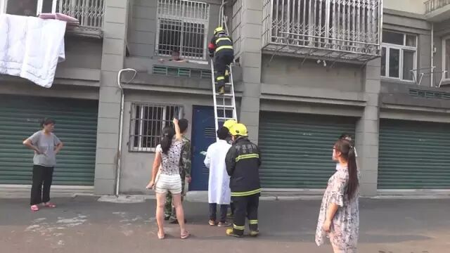 男子被困在2楼阳台,而他的老婆则站在楼下怒骂↓