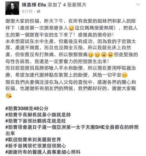 在这个事情发酵的那几天,娱乐圈也或多或少的发生一些喜事和“假喜事”!喜事呢,那就是Ella终于生了。