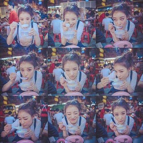 倪妮拍照拗造型,连拍了这么多张,手里的食物丝毫不见少,只拍不吃水太深,请多一点真诚少一点套路好么。