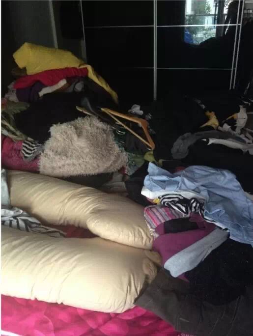 2014年7月26日。家里太小,为了给宝宝腾出一个衣柜,今天和胖妹儿在家把衣柜大清理了一遍,旧衣服装了4大垃圾袋。把楼下的老婆婆高兴惨了···