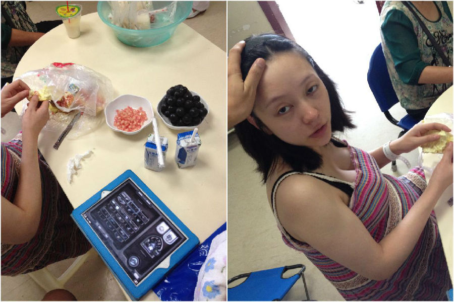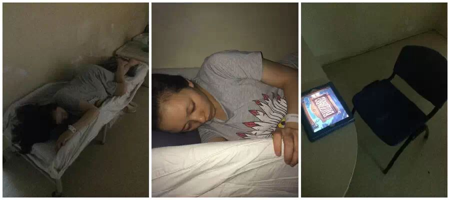 2014年8月23日凌晨,开放二胎政策后产科医院爆满,才进来的我们只有在过道加床。碾转反侧无法入眠的胖妹儿。和在一边为她加持王者祝福的我。