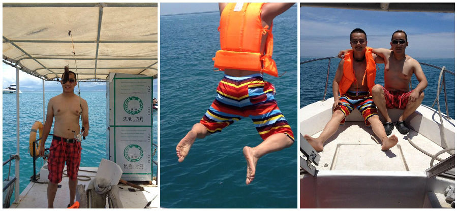 2014年6月15日。和奶人一起在三亚驻站,巧合的是今天是父亲节,也是我们两个过的最后一个还没当父亲的父亲节。一起出去在海上疯了一下午。共勉。