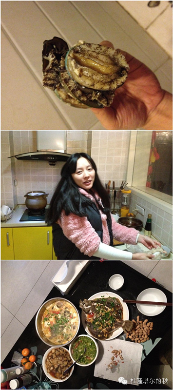 2014年1月9日。之前听人家说孕妇有妊娠反应,我问胖妹儿有没有,她一撇嘴:“身体差的人才会有妊娠反应,我身体那么好,肯定不会有撒,老公,我又饿了,想吃海鲜。”哥一听,顿时豪情万丈:“走,晚上我们整顿大餐!”便直接杀向海鲜市场。看这一桌丰盛的晚餐就知道肯定要有个专业打下手的人才做得出来,那个人就是我!