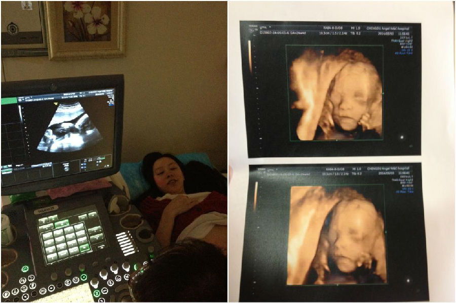2014年5月3日。到了打四位彩超的日子,宝宝照出来很斯文,妈说像胖妹。胖妹说像我,宝宝其他都很正常,但是医生说宝宝肺动脉瓣回流血流,有可能是先天性心脏病,而且这个情况不多见。建议我们做产前检查。在妈妈爸爸面前,胖妹儿怕他们担心,还稳起说没啥子问题。妈妈爸爸一走,胖妹儿就哭了。一边查资料,一边在她的孕妈群里面咨询。我也一直在开导胖妹儿,宝宝还小,等我们复查的时候就差不多长好了。胖妹儿只是哭,我心里又何尝像开导她那么轻松,“像有石头压在心头”这个比喻真贴切。