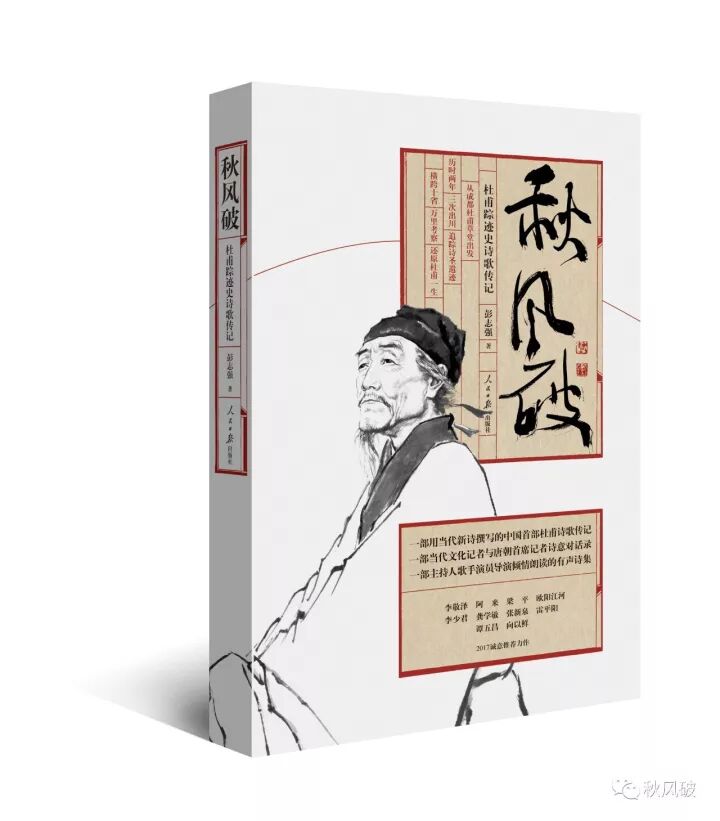 《秋风破——杜甫踪迹史诗歌传记》,简称“《秋风破》”,是全国首部根据诗圣杜甫从生到死的踪迹创作的当代诗歌传记,用九九八十一首新诗梳理杜甫遗迹的前世今生。作者彭志强从二零一二年(杜甫诞辰一千三百周年)开始系统研究与杜甫有关的各种文献书籍,并于二零一五年春,从成都杜甫草堂出发,历时两年,横跨十省,万里追踪,行走考察杜甫一生留下的八十一处遗迹(博物馆、纪念馆、杜公祠、杜甫墓),作者所到之处以当代文化记者(诗人)与唐朝首席记者(诗人)隔空对话,化为诗句,借古抚今,给杜甫立传,向诗圣致敬。