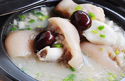 2、猪蹄含丰富胶原蛋白质,有效对付妊娠纹。但其脂肪含量较高,不要吃过多。