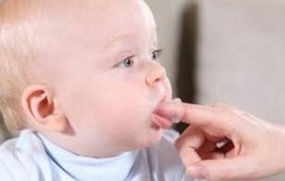 1.从宝宝出生后,干净柔软的纱布缠绕在手指上,为宝宝清洁牙龈。