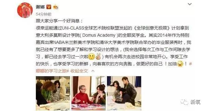 今年三月,她在微博宣布自己拿到了意大利多莫斯设计学院全额奖学金,要去欧洲学设计。