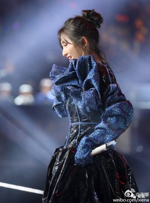 她自己微博发的活动现场精修图,也还是挺自然的。