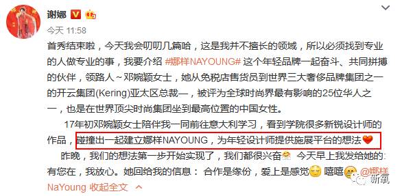 而如今大概学成归来?(只听说了怀孕的消息,也不知道是否有去留学)直接宣布再次创办个人时尚品牌娜样NaYoung(名字依然很接地气)。昨天首秀的服装给大家感受一下吧~
