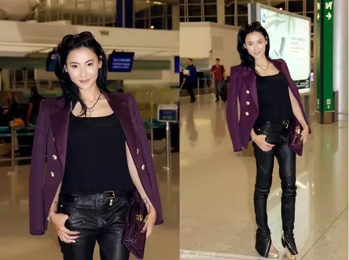今天还看到张柏芝出发参与时装周活动的机场look!