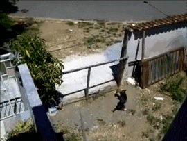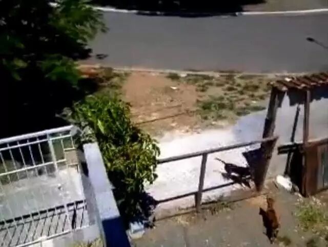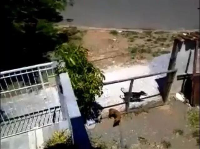 黑狗的主人经常训练它爬上爬下和各种高难度动作,在这一片是有名的训狗专家。没想到两米多高的栅栏门一下子就被黑狗跳了进来,迈瑞将黑狗视频发给了领居,领居看完也苦笑不得,迈瑞笑着说流氓狗会武术,大门再高也挡不住。下边有动态图。