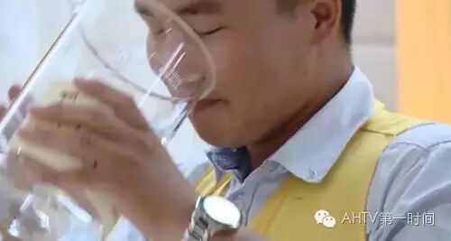 喝上为体验分娩而做成的特制水...(看爸爸们的痛苦表情...)