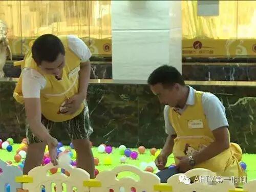 五位年轻的爸爸,穿上装了水袋和鸡蛋的特制孕妇装,体验孕妇日常生活的艰难。
