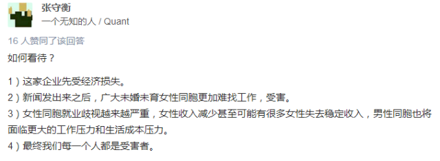 网友评论里很大一部分表达了此类案例对女性就业形势的担忧——