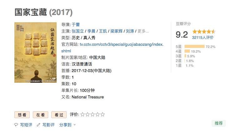 豆瓣评分罕见的高,9.2分。连续几天霸占微博热搜榜,这可以说是中国原创综艺又上了一个台阶!很多网友大呼,央视一出手文化综艺节目就是出大招呀!