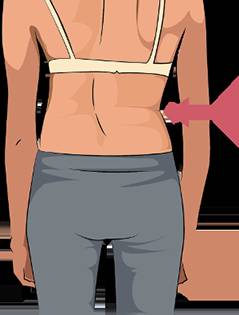 用手摸摸自己的腰部后下方两侧,是否太过于厚厚硬硬的,两边的腰是否一前一后或者一高一低。