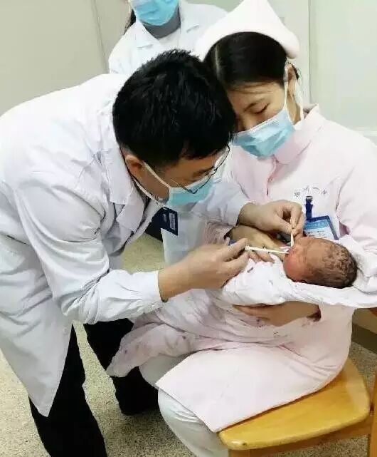 怀化新晃的一位妈妈姚女士在新晃县人民医院剖腹产下了一名体重七斤四两的健康女婴,宝宝一出生竟长出了两颗门牙。