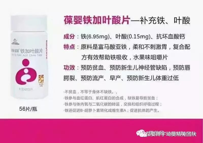铁质叶酸片: 2粒/天