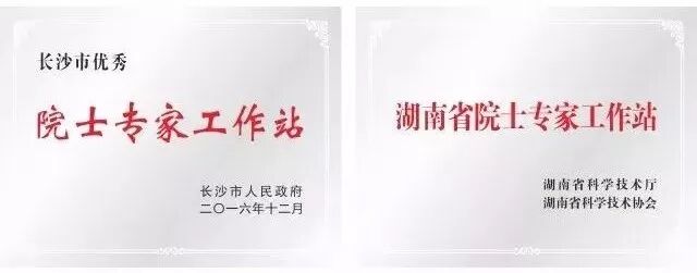 2015年12月长沙市政府批准院士专家工作站建站;2016年度考核中被评为优秀院士专家工作站;2017年7月晋升为省级院士专家工作站。