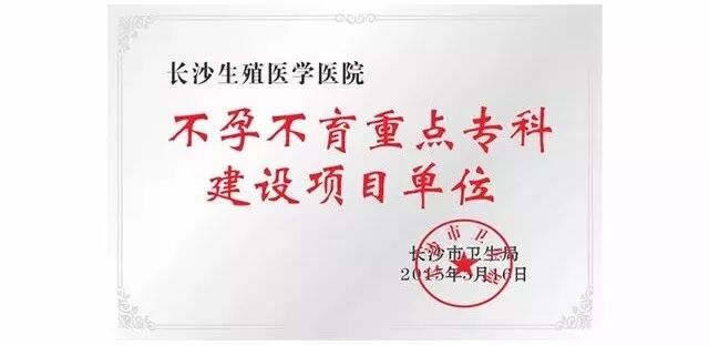 2015年3月长沙市卫生局确定我院为长沙市首家不孕不育重点专科。