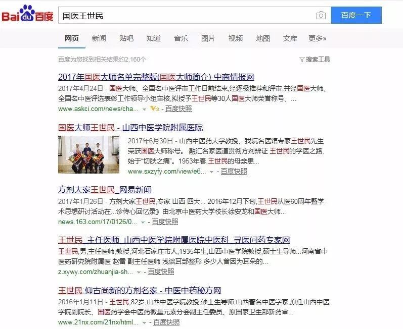 百度搜索国医大师王世民,会发现关于王世民老师的报道不计其数