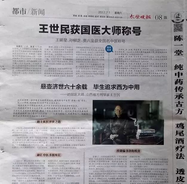 2017年7月1日,《太原晚报》第08版对王世民老师的整版报道中写道:“王世民从医六十余载,临证经验丰富。不论什么病,只要有是证就用是方,加加减减都好用。”