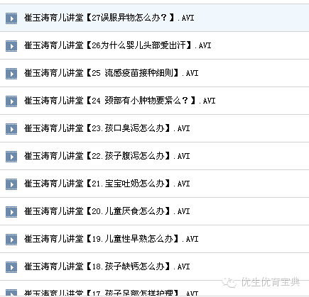 好消息,自即日起关注本公众平台,回复“育儿讲堂”即可免费获得“育儿名师崔玉涛育儿讲堂视频”全套资料共77集,育儿名师马上带回家!(部分内容如下)快点行动起来吧~
