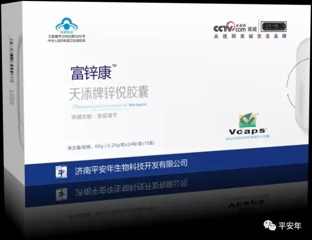 产品通过CCTV央视商城评选为“优选品牌”平安年富锌康LOGO出现在盒子上,央视背书值得信赖。