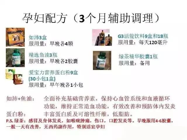 如新孕妇营养:爱宝力蛋白粉+如沛+G3活能果汁+鱼油+茶沛